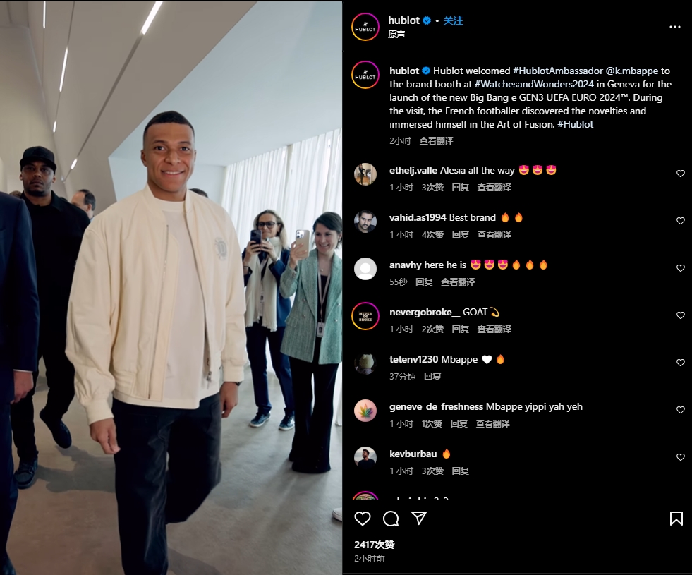 作为宇航手表的品牌大使。姆巴佩被邀请参加瑞士手表展。法国前锋在镜头前微笑,但姆巴佩没有发表任何评论,因为他在比赛中令人失望的表现。